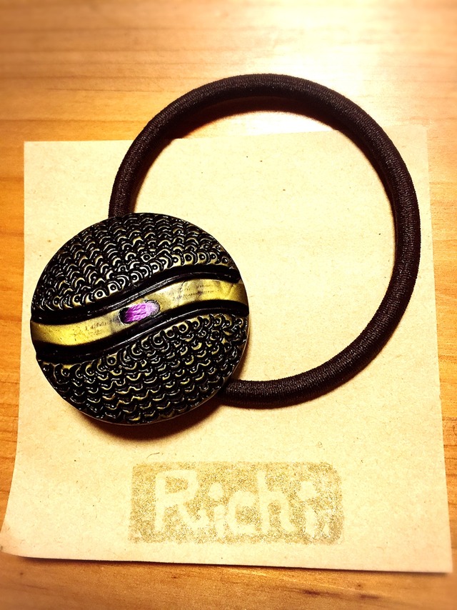 深いパープルをポイントに、グレー系のボタンと並べた バナナクリップ。
