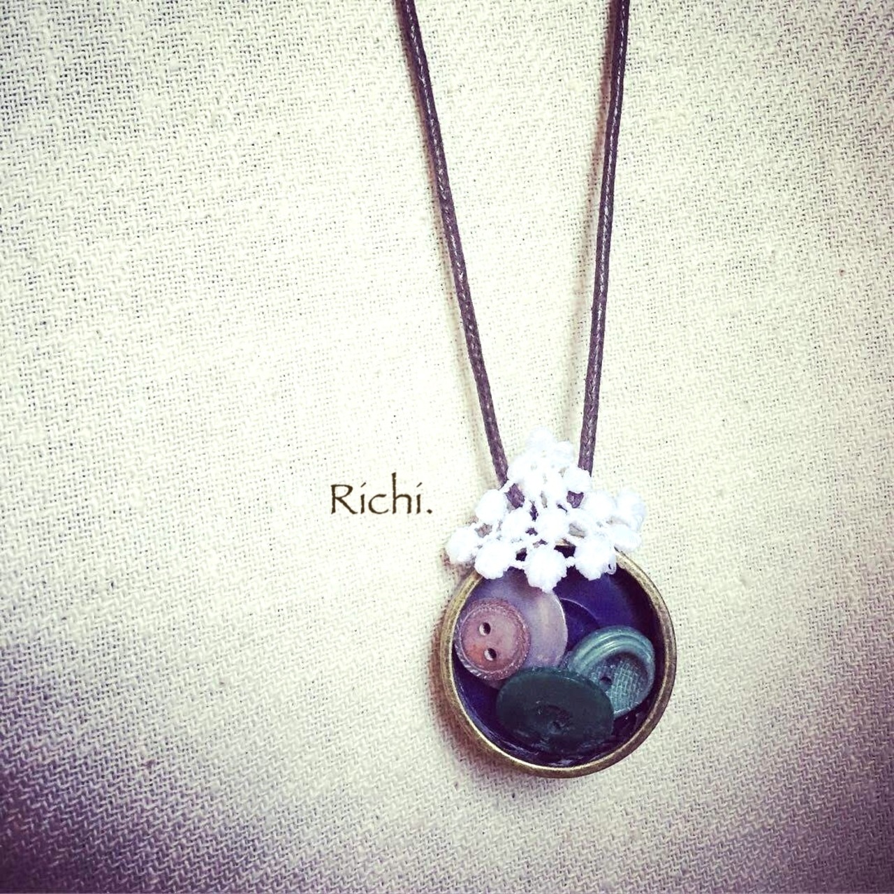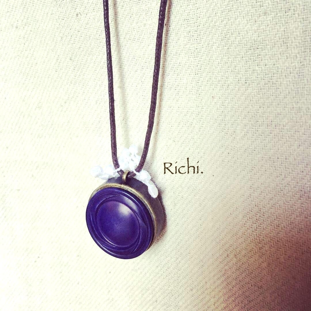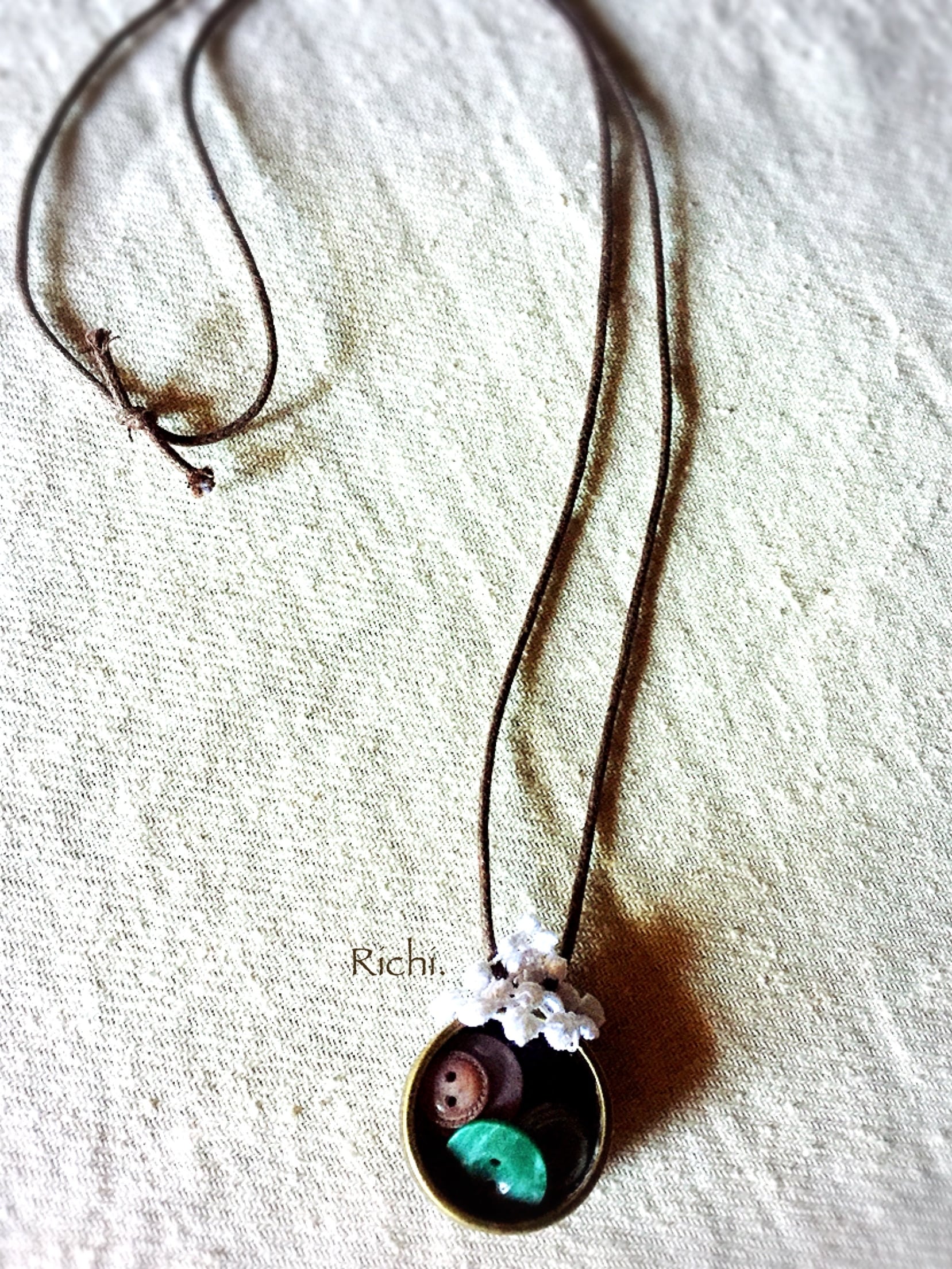 レトロボタンをアンティーク調のパーツ内にレイアウト。表裏リバーシブルデザインですっ。