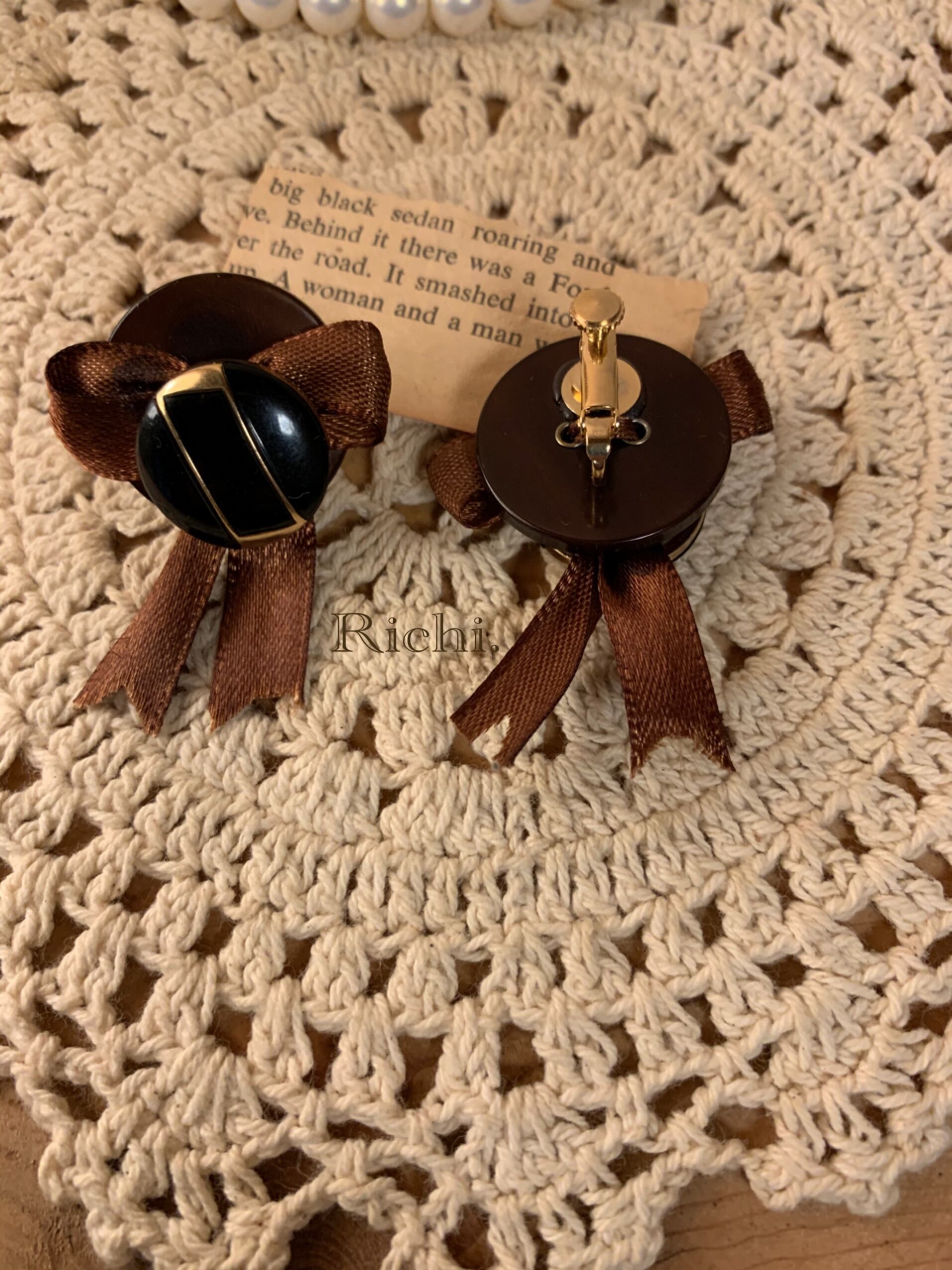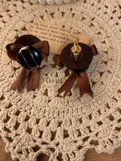 写真からもわかるように、光角度により表情が変わります。ブラウンとゴールドの珍しいパール感あるボタン✨