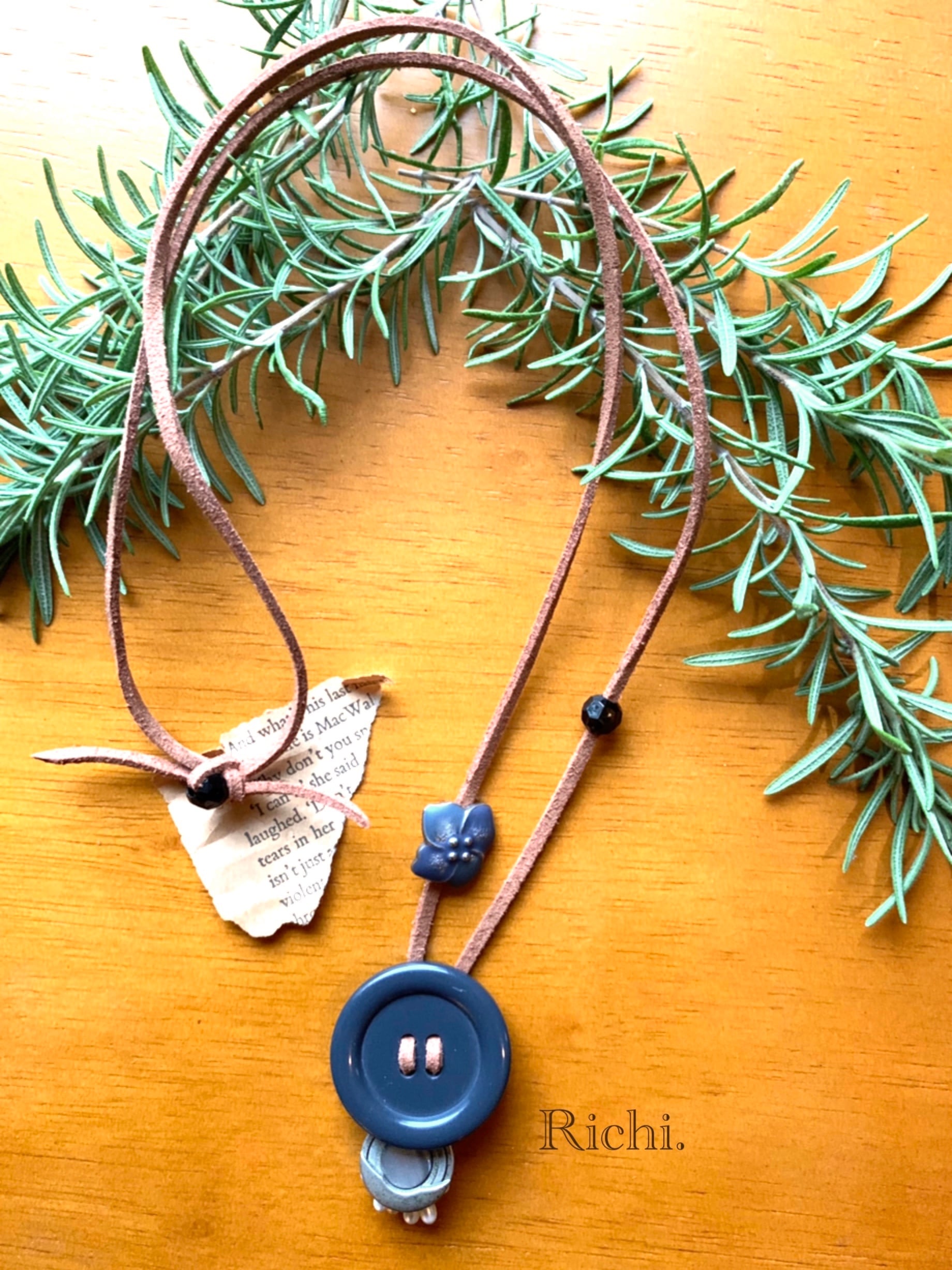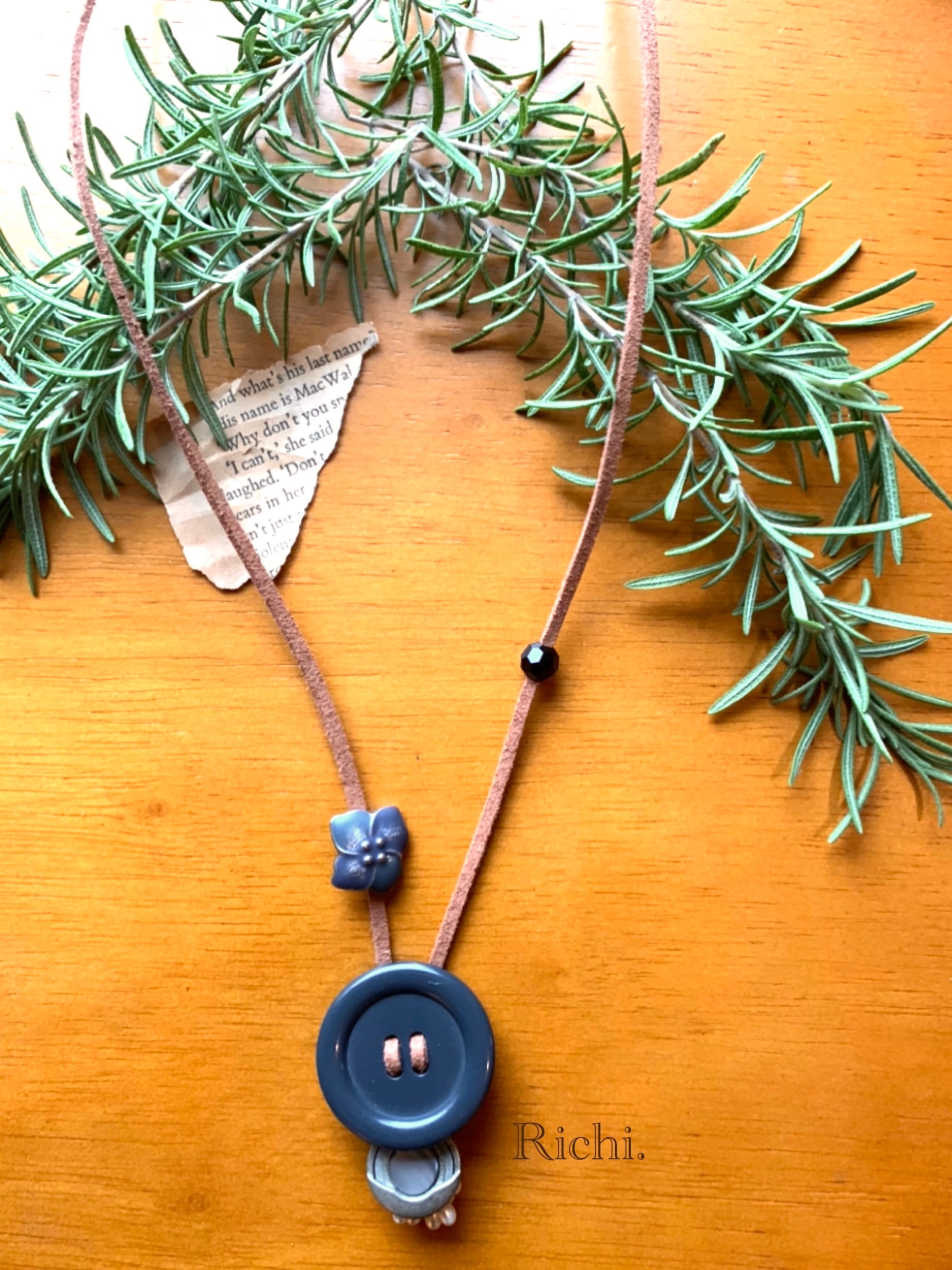 紐にある小さな花ボタンやパーツは好きな位置に移動できます。
